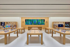 Inside the store, customers will find the familiar minimalist design characteristic of Apple’s global retail aesthetic, with:
