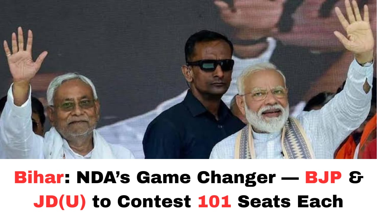 In a departure from past alliances and seat negotiations, the National Democratic Alliance (NDA) has announced a fresh power balance for the 2025 Bihar Legislative Assembly elections: the Bharatiya Janata Party (BJP) and Janata Dal (United) (JD(U)) will each contest 101 seats out of the total 243.