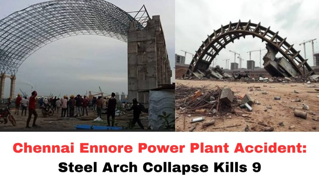 Chennai, Tamil Nadu – A construction site tragedy unfolded late Tuesday night at the Ennore SEZ Thermal Power Plant in Ooranambedu, Tiruvallur district, when a steel arch-like metal structure under construction collapsed, killing nine workers and injuring several others. All the deceased were migrant workers from Assam.