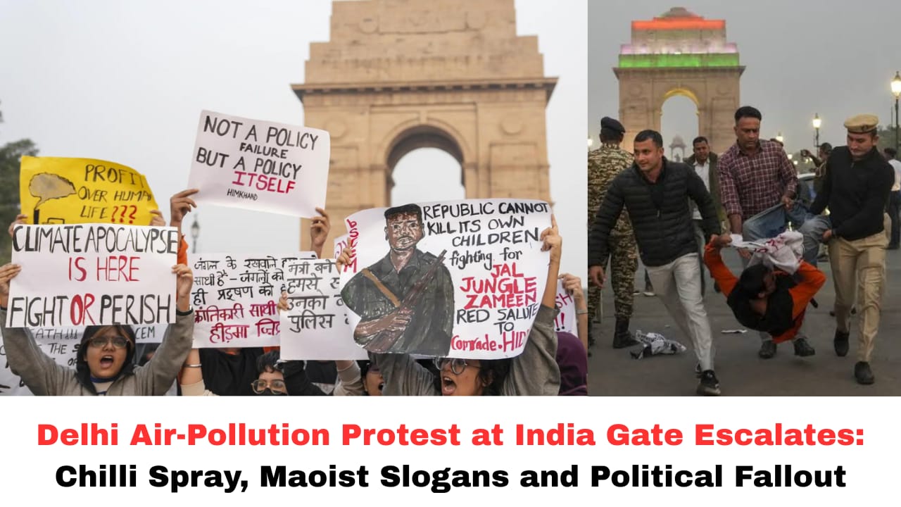 What began as a protest against crippling air pollution in the national capital has taken a sharply political turn, as demonstrators at India Gate invoked Maoist slogans, used chilli spray against police, and faced arrests — sparking a broader debate over dissent, ideology, and the handling of Delhi’s air crisis.