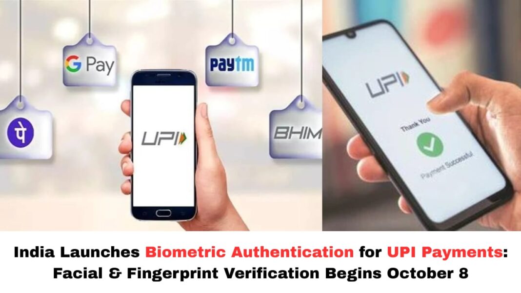 - From October 8, 2025, UPI transactions will start using biometric authentication (fingerprint or facial recognition), instead of requiring a PIN for each transaction.