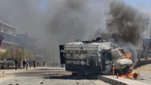 - Damage to property includes torched vehicles (including police/security vehicles), and the BJP’s local office was set ablaze.