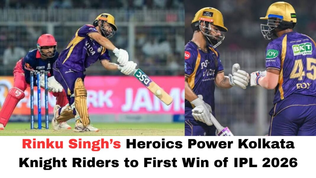 The Indian Premier League (IPL) 2026 witnessed a thrilling contest as Kolkata Knight Riders (KKR) finally opened their account with a dramatic four-wicket victory over Rajasthan Royals (RR). In a match filled with twists and pressure moments, it was Rinku Singh who emerged as the undisputed hero, delivering a match-winning unbeaten knock of 53 runs to guide his team home.