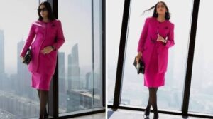 True to her reputation as a style maven, Sonam’s pregnancy reveal was as much a fashion statement as a personal milestone. In a series of elegant Instagram photos, she cradled her baby bump while wearing a striking hot-pink wool suit — a design by Escada (Margaretha Ley) that pays homage to Princess Diana’s iconic power suits from the late ’80s and early ’90s. The suit features oversized padded shoulders and a softly curved silhouette, channeling the late royal’s timeless elegance.