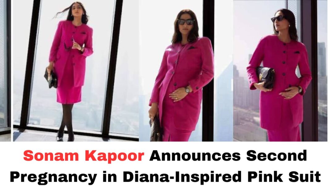 True to her reputation as a style maven, Sonam’s pregnancy reveal was as much a fashion statement as a personal milestone. In a series of elegant Instagram photos, she cradled her baby bump while wearing a striking hot-pink wool suit — a design by Escada (Margaretha Ley) that pays homage to Princess Diana’s iconic power suits from the late ’80s and early ’90s. The suit features oversized padded shoulders and a softly curved silhouette, channeling the late royal’s timeless elegance.
