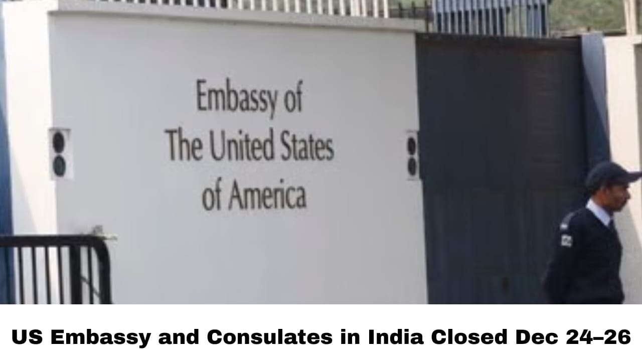 The United States Embassy in New Delhi and all U.S. consulates across India — including mission offices in Mumbai, Chennai, Hyderabad, Bengaluru, and Kolkata — are officially closed for routine services from Wednesday, December 24 to Friday, December 26, 2025. The closure follows a Presidential Executive Order issued by the U.S. government and coincides with the Christmas holiday period, prompting diplomatic missions worldwide, including those in India, to suspend normal operations. During this three-day period, routine consular functions such as visa interviews, passport renewals, consular assistance, and document verification services will be unavailable.