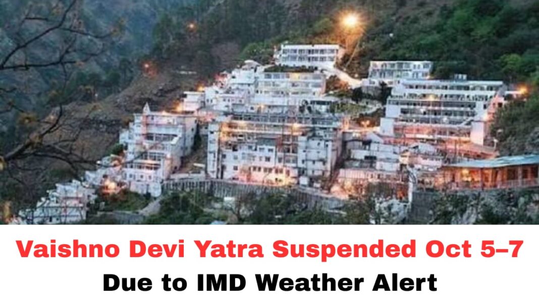 In a precautionary move prompted by inclement weather forecasts, the Shri Mata Vaishno Devi Shrine Board has announced that the Vaishno Devi Yatra will be suspended for three days — from October 5 to October 7, 2025. The pilgrimage is expected to resume on October 8, conditions permitting.